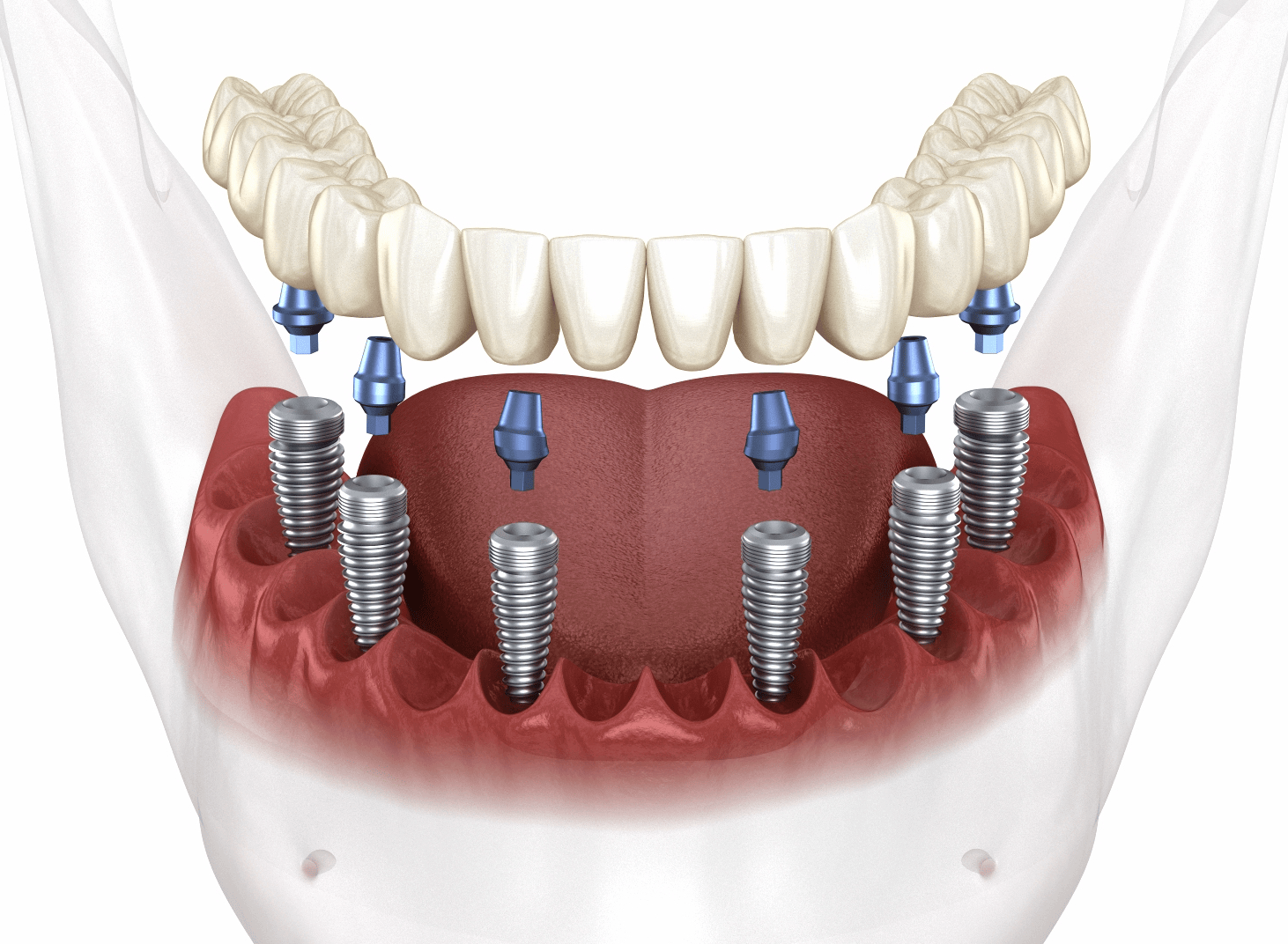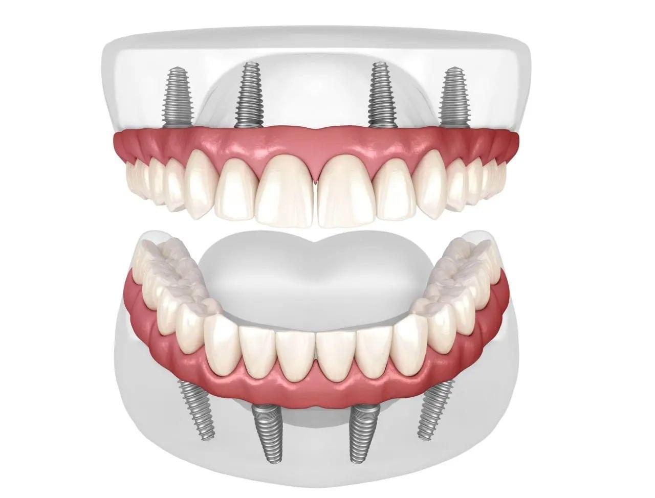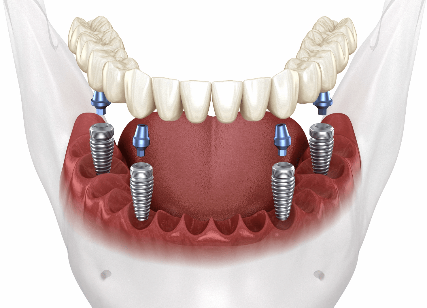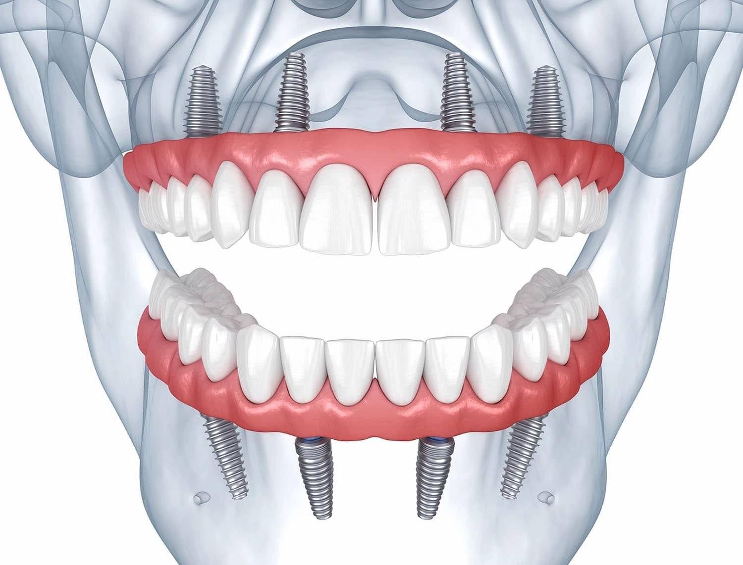 Gli impianti All on 4 prevedono l'inserimento di quattro impianti dentali in punti strategici dell'osso mascellare o mandibolare, sui quali viene montata una protesi fissa, offrendo stabilità e sicurezza.